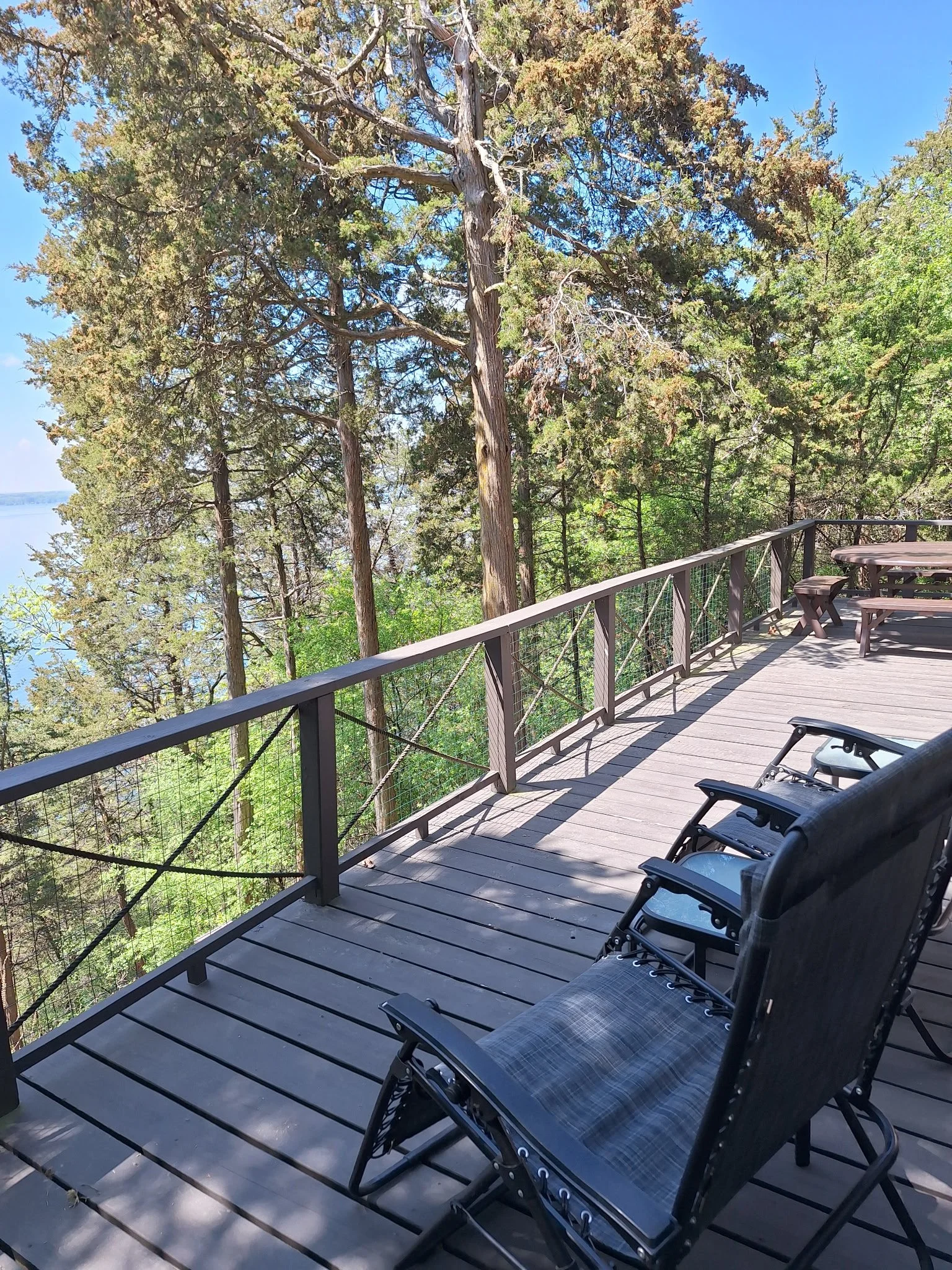 This home is a treasured multi-generational vacation haven. Though the decor reflects a 1970s style, the property is impeccably maintained, evoking nostalgic memories. The owners have spared no effort in readying the home for guests, eager to share the beauty of the bluff and the refreshing lake breeze that flows across the deck.