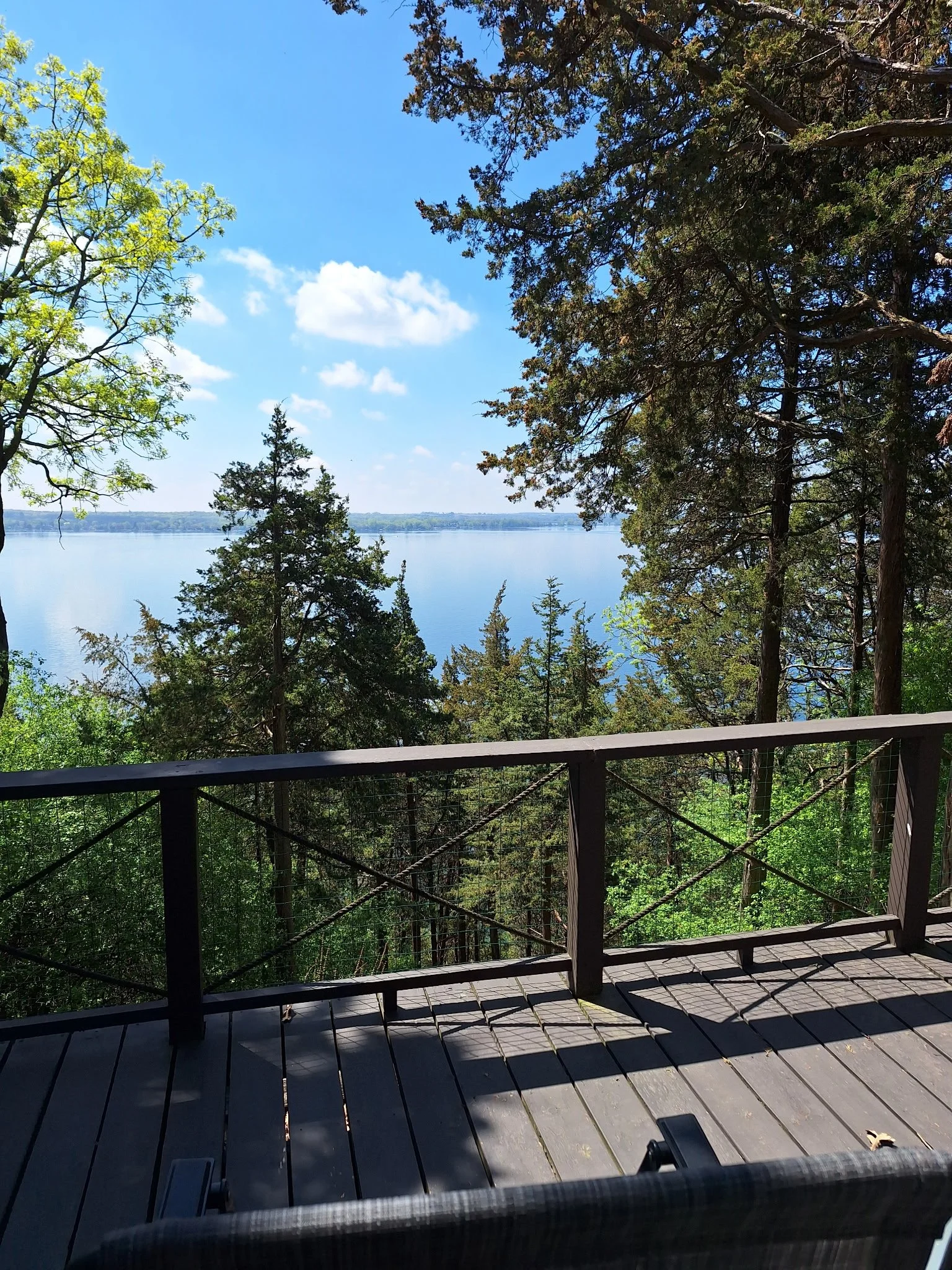 Escape to a cozy retreat 125 feet above Green Lake, offering stunning views and fresh breezes. Perfect for couples or small groups, this peaceful home features two bedrooms, a full bath, a stocked kitchen, and a den with a futon. Relax on the wrap-around porch, dine outdoors, or cozy up by the fireplace. Enjoy visits from wildlife and private access to the lake’s boat launch. A perfect blend of nature and comfort. Come and stay where the deer love to play!